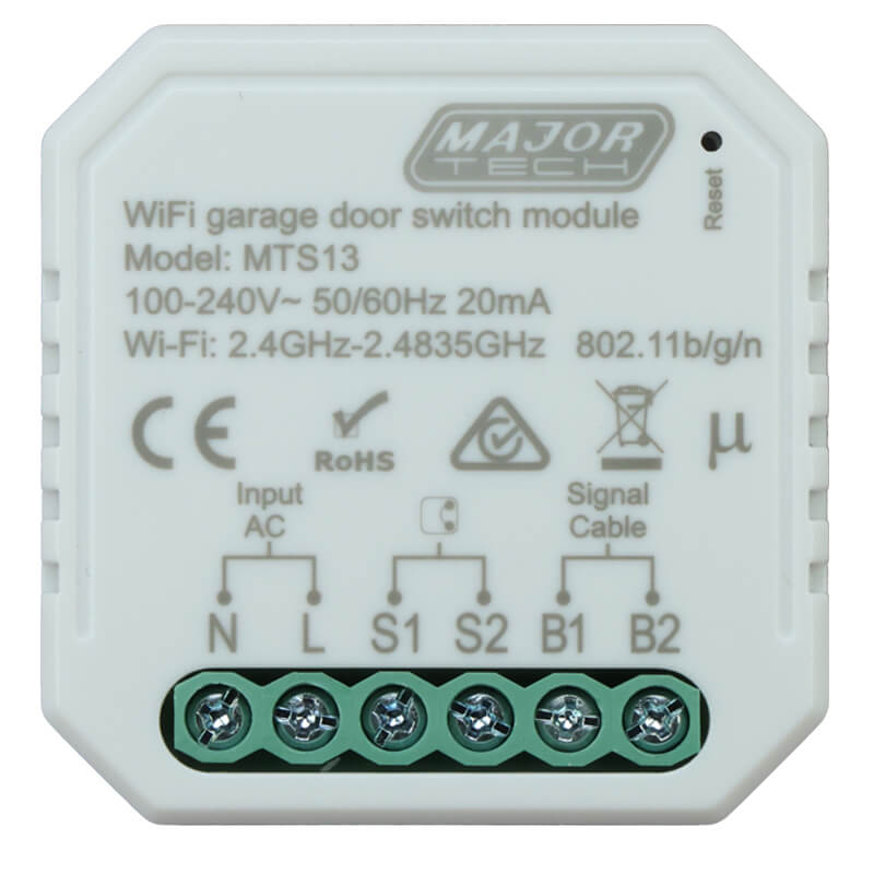 Unlock the future of convenience with our Smart Garage Door/Gate Opener Module! Designed to seamlessly integrate into your home, this versatile device operates on voltages ranging from 100 to 240V AC 50/60Hz, ensuring compatibility with a wide range of setups. Featuring Dual Mode Wi-Fi and Bluetooth 5.2 communication, you’ll experience reliable connectivity whether you’re near or far. Voice Control available with Alexa and Google Assistant. Plus, with an IP20 rating, rest assured your device is protected against dust and small particles. Take full control of your garage or gate with our intuitive Major Tech Hub Smart App. Open and close your garage door or gate with a tap of your finger, receive real-time alerts on activity, and even schedule automatic routines for added convenience.